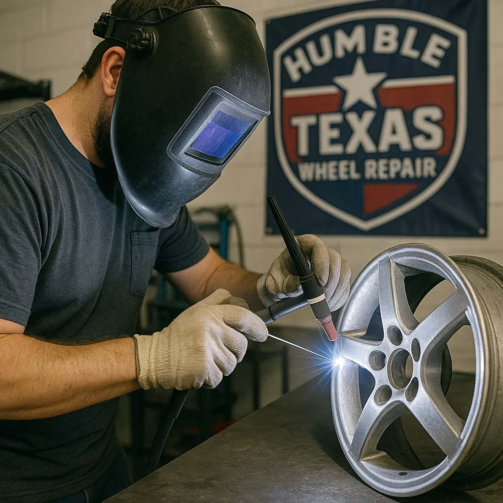 At Sugar Land Wheel Repair we use TIG welding (Tungsten Inert Gas welding), a precise and controlled method that fuses the cracked metal back together while maintaining the wheel’s original strength. Our technicians clean and prepare the area, weld the crack with high-quality filler material, then grind and smooth it for a flawless finish. After welding, the wheel is carefully inspected and tested to ensure it’s structurally sound and safe for the road.